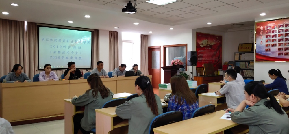 5月30日上午,浙江紡織服裝職業(yè)技術(shù)學(xué)院2019級擴招班(染整技術(shù)專(zhuān)業(yè))2020年春季課程正式開(kāi)課了。在課前,公司13名學(xué)員在班主任蔣老師的帶領(lǐng)下在課前進(jìn)行了簡(jiǎn)單的開(kāi)課儀式,公司董事長(cháng)兼總經(jīng)理莫炳榮、副總莫榮明、總工施道妃工出席了儀式。