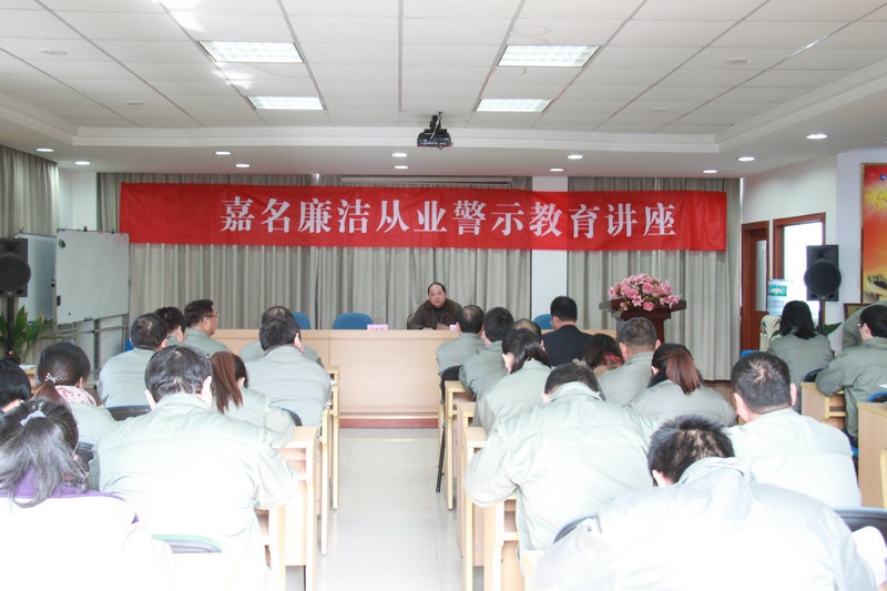 為加強經(jīng)營(yíng)管理人員的從業(yè)廉潔教育,促進(jìn)公司上下認清形勢、提高認識、遵章守紀、廉潔從業(yè),12月26日下午,公司舉辦廉潔從業(yè)警示教育專(zhuān)題講座。公司領(lǐng)導,各部門(mén)、各事業(yè)部負責人,全體營(yíng)銷(xiāo)經(jīng)理、外協(xié)人員,部分倉管員等50多人聽(tīng)取講座。講座邀請桐鄉市檢察院原黨組成員、副檢察長(cháng)沈俊夫就非公企業(yè)職務(wù)經(jīng)濟犯罪的預防進(jìn)行了深入講解,講座還宣貫了《公司員工廉潔從業(yè)規定》,公司莫總講了話(huà)。