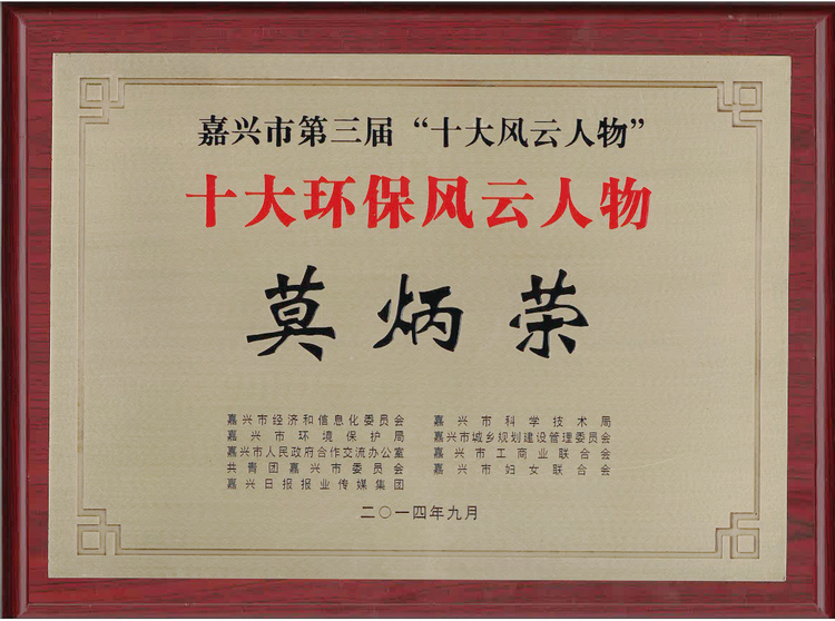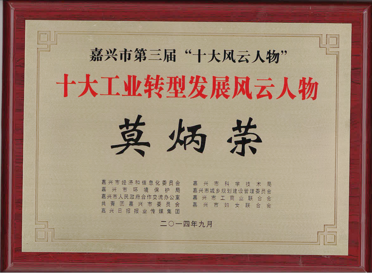 9月18日,在嘉興市第三屆“十大風(fēng)云人物”頒獎典禮上,公司董事長(cháng)兼總經(jīng)理莫炳榮同時(shí)榮獲“嘉興市十大工業(yè)轉型發(fā)展風(fēng)云人物”、“嘉興市十大環(huán)保風(fēng)云人物”榮譽(yù)稱(chēng)號。