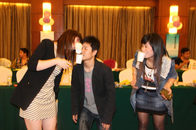 甜美的歌聲,趣味的游戲,激情的笑聲,——展現出青工們的青春活力。楊麗的一首《123木頭人》贏(yíng)得了青年們熱烈的掌聲;陸曉麗、吳耀、郭婷、俞晨飛、鐘曉蘭等嘉名青年在快樂(lè )的游戲中結識青年朋友,嘉名車(chē)錦“背靠背運氣球”的游戲中還不惜赤腳上陣,在游戲中奔跑歡笑,全場(chǎng)都被她的快樂(lè )所感染。嘉名張娜是這次晚會(huì )中最引起注意的女青年之一,性格開(kāi)朗外向的張娜在聯(lián)誼晚會(huì )上,表現得十分活躍,幾乎每個(gè)游戲她都有積極參與?!凹埍瓊髑椤?、“緣分搶搶搶”、“背靠背運氣球”……玩得高興了,張娜說(shuō):“我既然來(lái)了就要玩得高興,希望男生能喜歡最真實(shí)的我?!痹谕頃?huì )接近尾聲時(shí),張娜登上舞臺,為大家獻唱了一曲《朗的誘惑》,她自信的歌聲和燦爛的笑容贏(yíng)得了在場(chǎng)小伙們的青睞,其中幾位開(kāi)始打聽(tīng)起張娜的相關(guān)信息來(lái)。