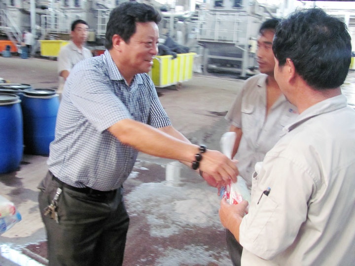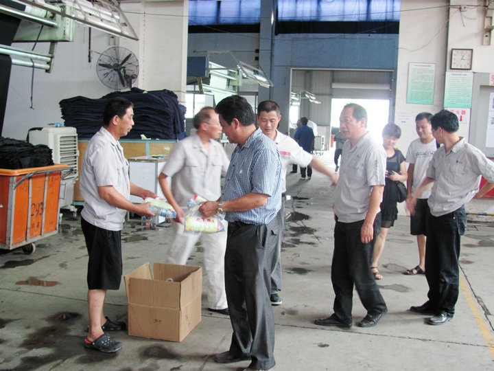 桐鄉市總工會(huì )主席朱士良等領(lǐng)導來(lái)公司慰問(wèn)高溫下工作在一線(xiàn)的生產(chǎn)員工